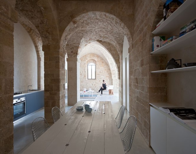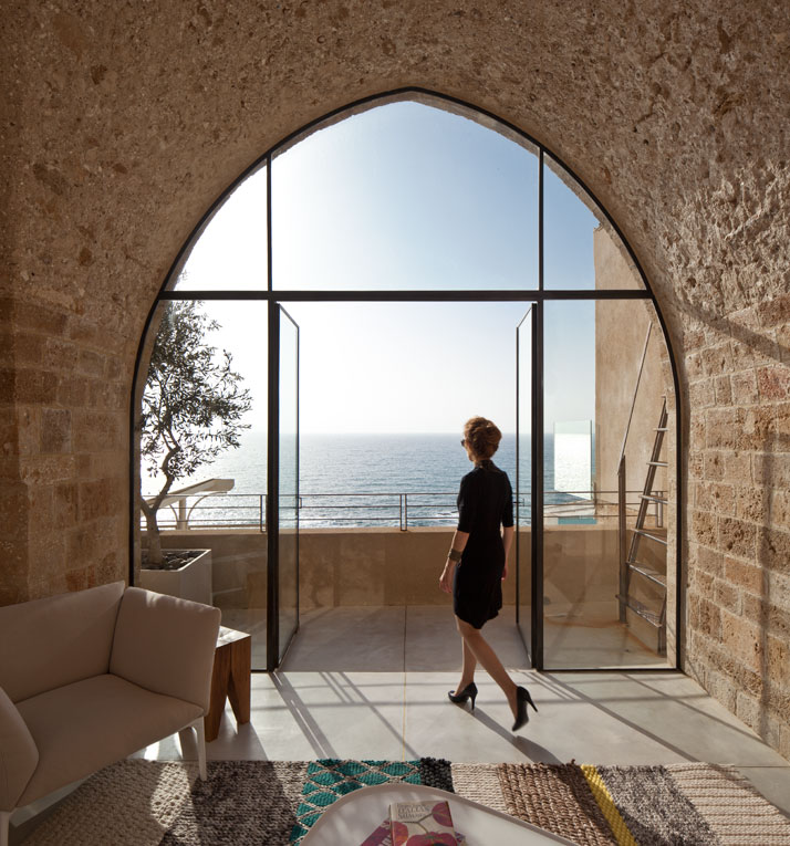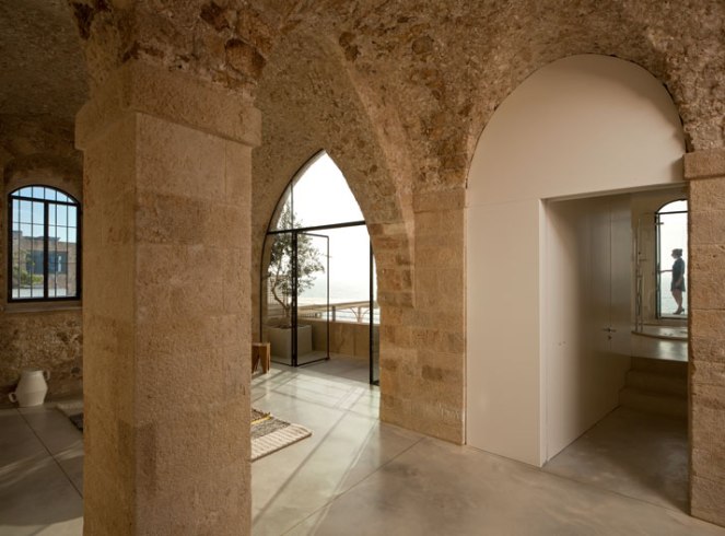 Here I show you fabulous historical-residential apartment located in the ancient port of Jaffa, Tel Aviv – Israel. It has been carefully designed by the architectural firm Pitsou Kedem Architects. The apartment consists of 1075 sq feet with views to the majestic Mediterranean sea. Its singularity lies not only in its location but also in its structure.