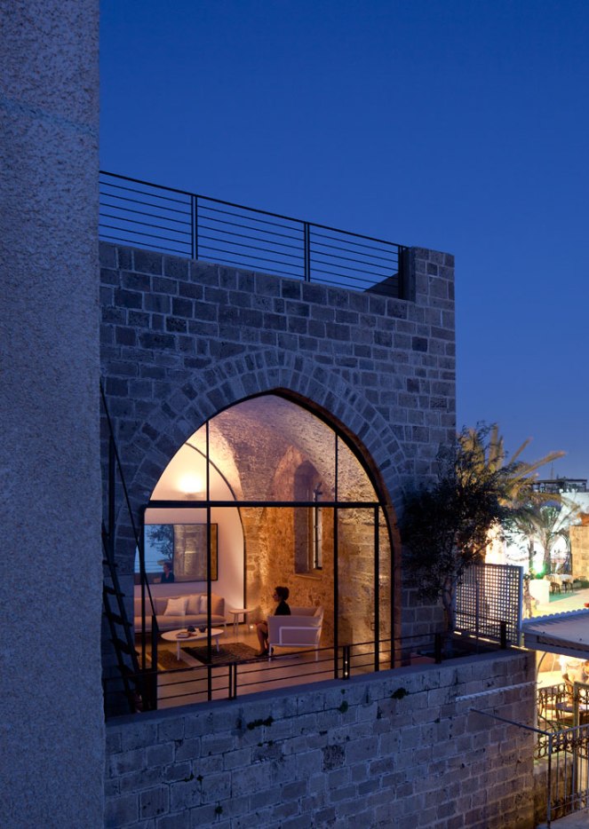 La casa, de 100 metros cuadrados, está situada en la antigua Jaffa. Su ubicación es única, ya que está situada por encima del puerto, mirando hacia el oeste, con todas sus aberturas orientadas hacia el majestuoso esplendor del mar Mediterráneo. Si bien es difícil determinar la edad exacta del edificio, está claro que tiene cientos de años. A través de los años, ha sufrido muchos cambios y muchos de ellos han dañado la calidad original del edificio y sus espacios. La idea central era restaurar la estructura de sus características originales, las paredes de piedra, los techos y los arcos segmentados, incluyendo la exposición de los materiales originales (una combinación de cerámica y arena de la playa). El edificio ha sido limpiado de todos los elementos extraños, de los revestimientos de paredes nuevas y ha sido objeto de un proceso de pelado para exponer su estado original. Sorprendentemente, los estilos modernos y minimalistas de la construcción nos recuerdan y se corresponden con el estilo ascético del pasado, y esto a pesar de la gran diferencia de tiempo entre ellos. La idea central era combinar lo viejo y lo nuevo, y mantener las cualidades de cada uno , creando nuevos espacios que combinan los estilos, incluso, intensificarlos por el contraste entre los diferentes períodos. Lo histórico se expresa mediante la preservación de las texturas y los materiales de la carcasa exterior del edificio y respeta el acuerdo de ingeniería de construcción. Lo moderno se expresa por la apertura de espacios y alterando el flujo interno haciendolo más abierto y libre una y con la creación de un entorno loft urbano junto con el uso de acero inoxidable, y hierro en las distintas particiones, en las aberturas y en los muebles. El proyecto tiene éxito, tanto en honrar y preservar los valores históricos y románticos de la estructura, como en la creación de un proyecto contemporáneo, moderno y adaptado a su época. A pesar de las diferencias de tiempo, las tensiones y la dicotomía entre los períodos, existe un espacio sorprendentemente equilibrado y armónico.