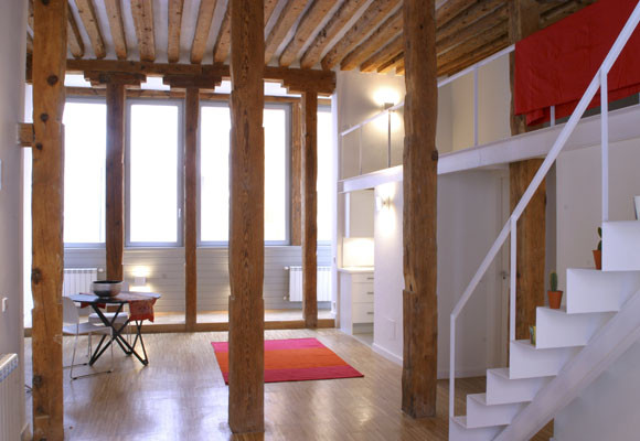 Constructed in 1775, nothing in its interior would reveal to us the age of the edifice. Comfortable loft apartments that are very distant from what must have been the original idea of its construction, which contrasts enormously with its exterior facade.