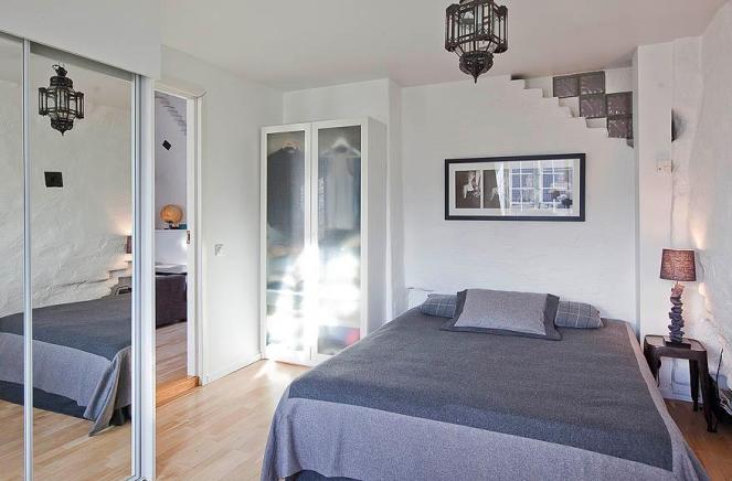 It has many interesting details, like the wooden beams that contribute to the unique sense of the ceiling. The living room has a centric location and counts with a natural division. The kitchen has been designed with white corian and is open to the living and dining rooms with a bar of Carrara marble. The living room has a chimney and an ample terrace of some 100 square feet. It also counts with large windows that permit the entry of natural light and panoramic views of beautiful Stockholm.