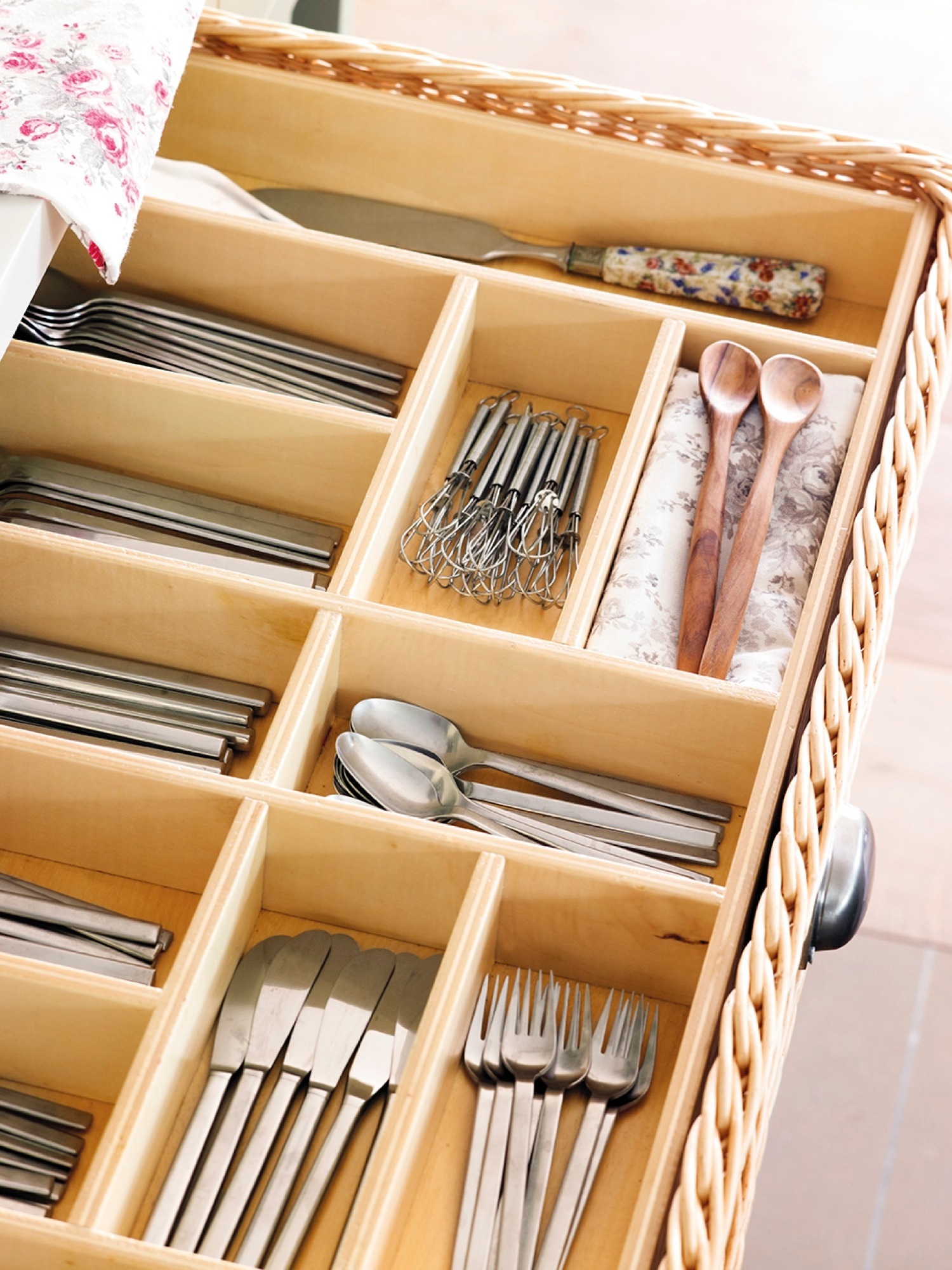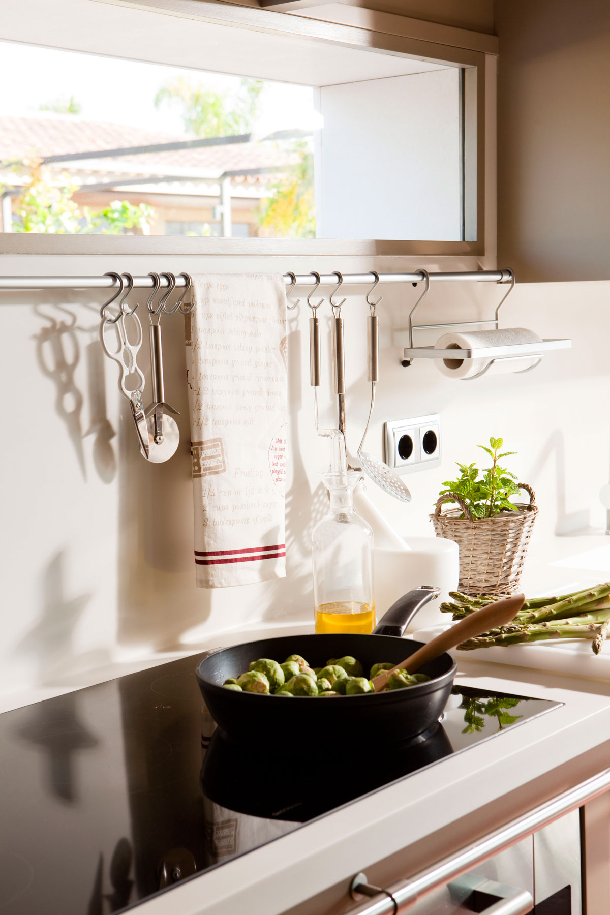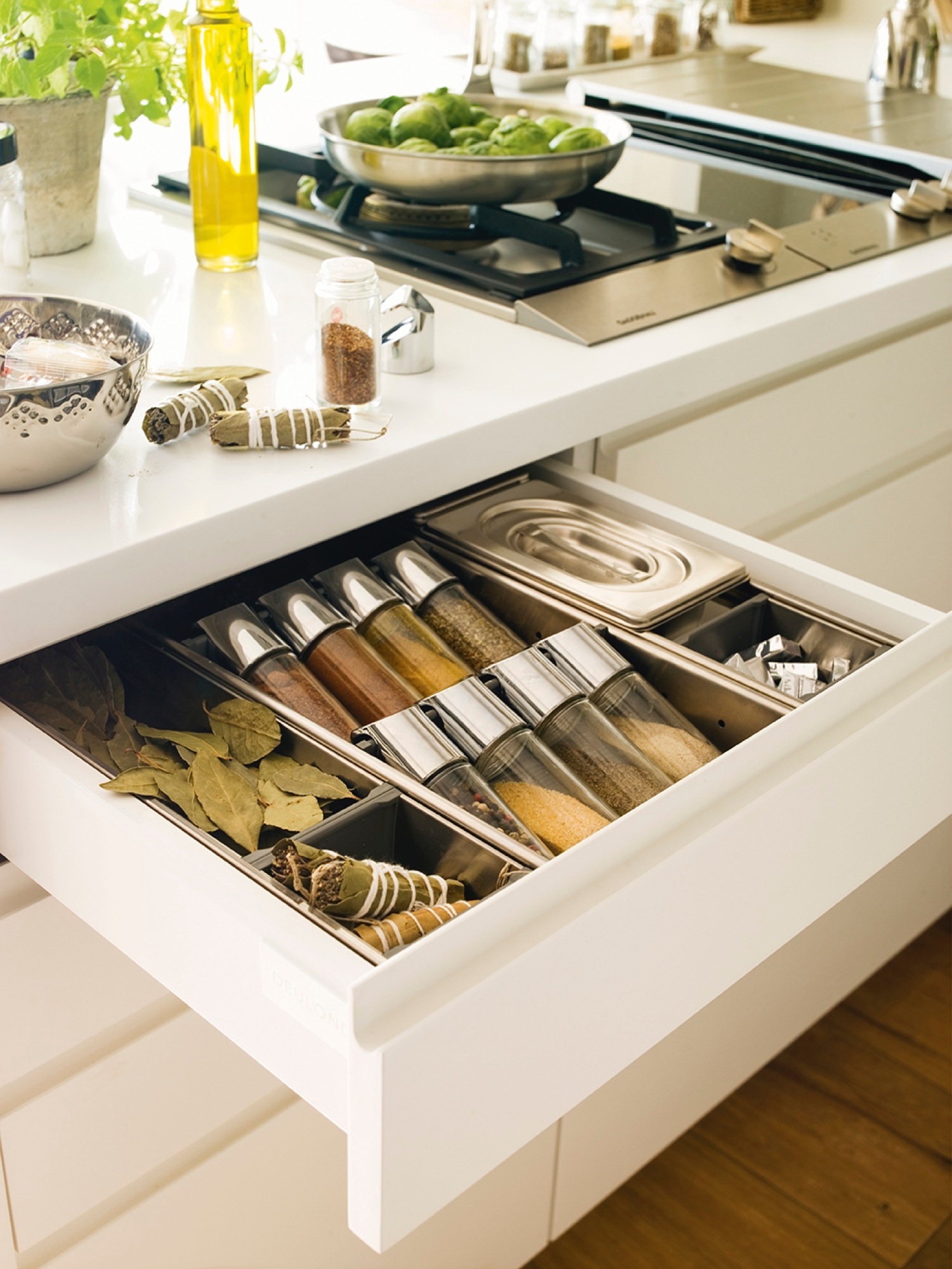 El orden en la cocina se consigue desde un principio, diseñando un espacio con muebles que sean de fácil acceso y donde cada utensilio tenga su propio sitio, de esta forma podemos mantenerlo todo organizado: cajón con cubertero, gaveta para las ollas y sartenes y alguna más con soportes para guardar la vajilla o las tapas de las ollas.