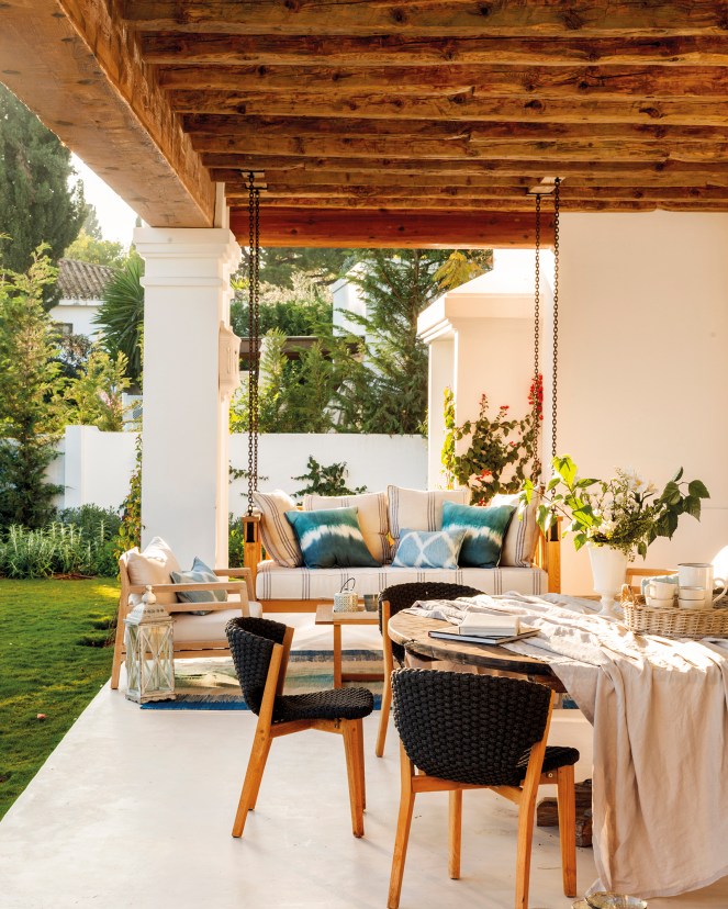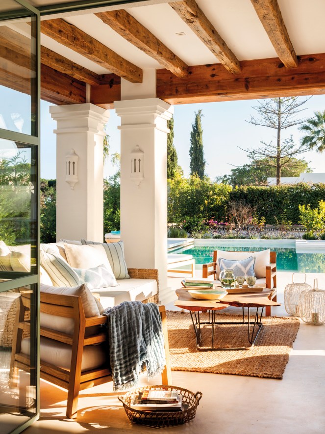 Esta casa de verano en Marbella, con sus vigas y suelos de madera, alfombras de fibra natural y una encantadora chimenea no puede ser mas acogedora. Y no solo está diseñada para disfrutar durante el verano, en sus hermosos espacios exteriores, sino que su acogedor interior, lleno de armonía y calidez, nos invita a disfrutarlo durante la época de invierno.