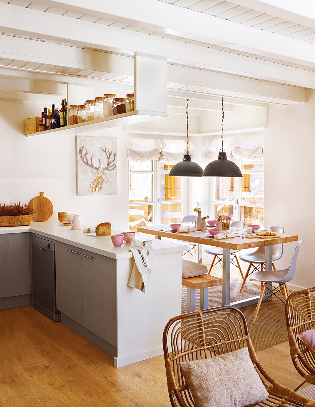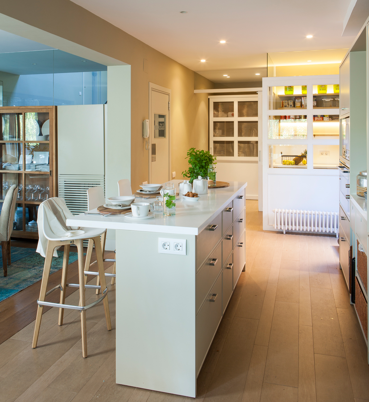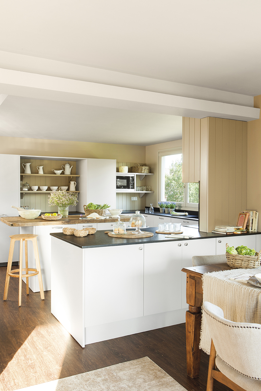 El contar con una cocina abierta tiene sus ventajas. Entre ellas está la sensación de amplitud que nos brindan los espacios abiertos y sumado a ello el contar con espacios en los que la luz natural llena cada rincón.