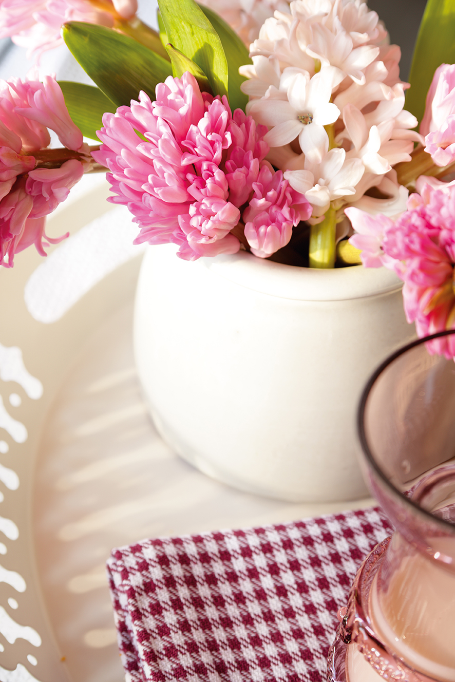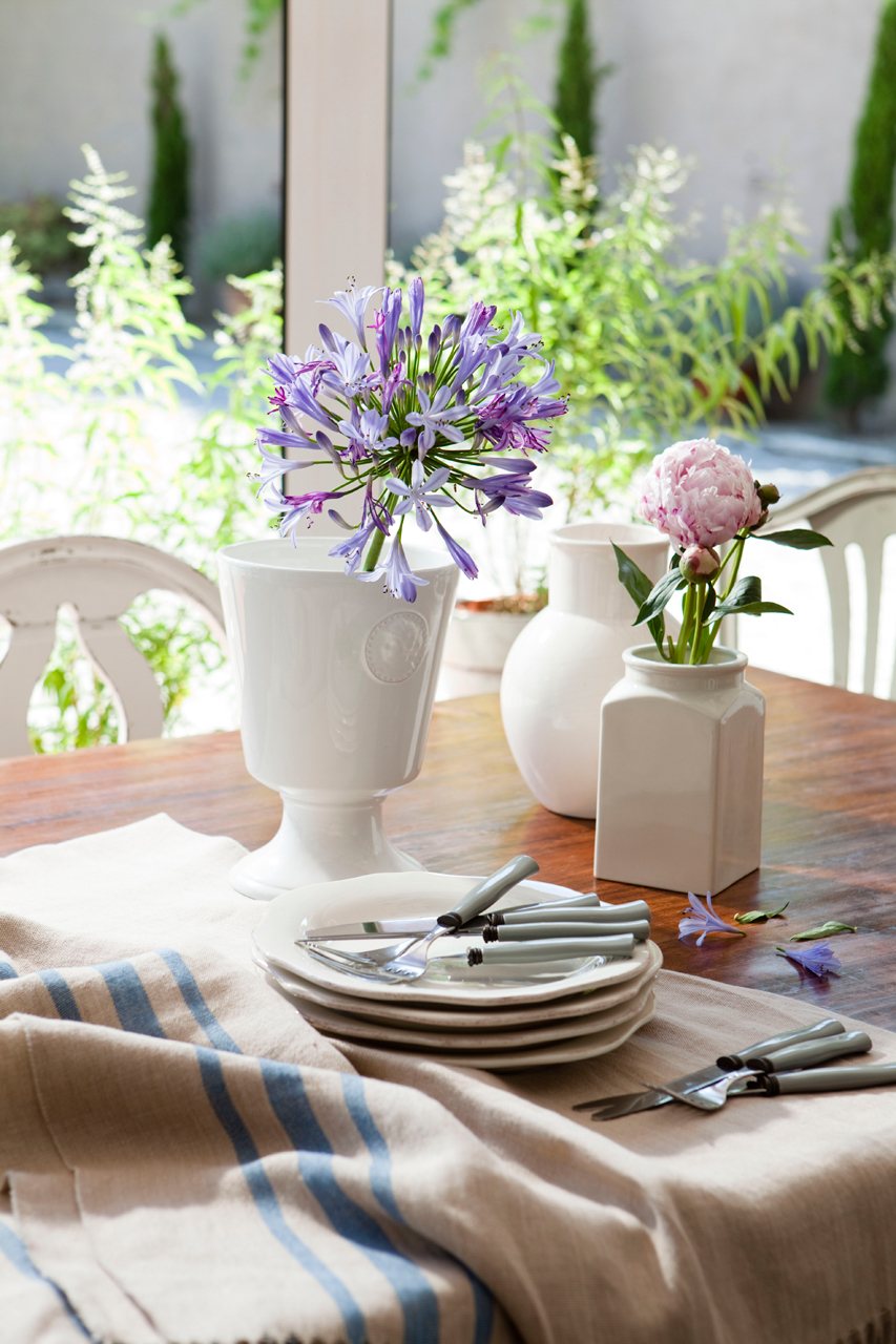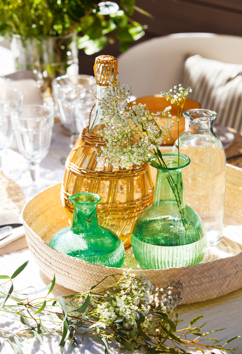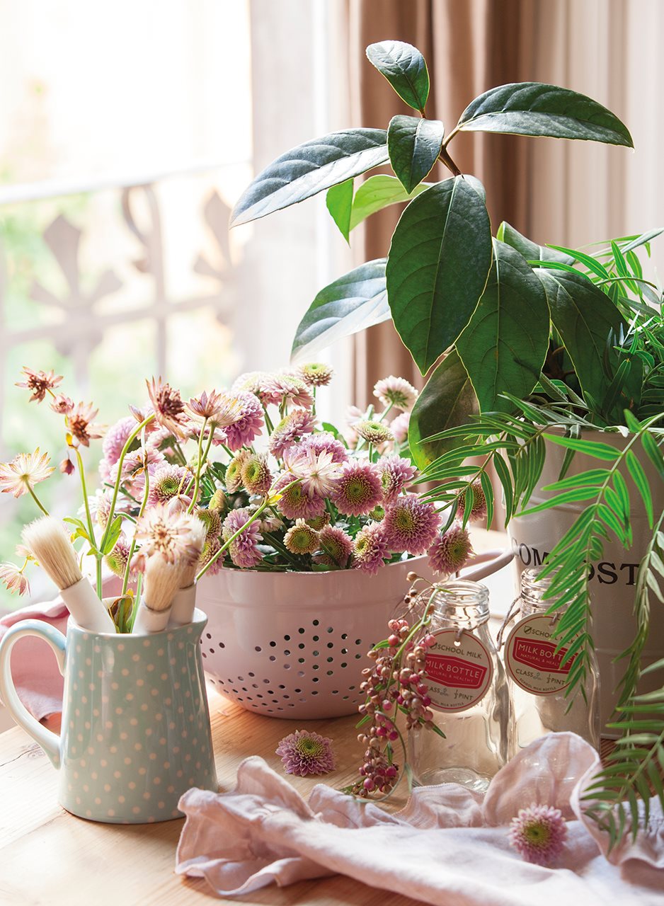 Combina plantas con flores con otras de distintos verdes y darás movimiento y profundidad al conjunto. Una buena idea es complementarlas con velas y dejar que la magia se adueñe del ambiente.