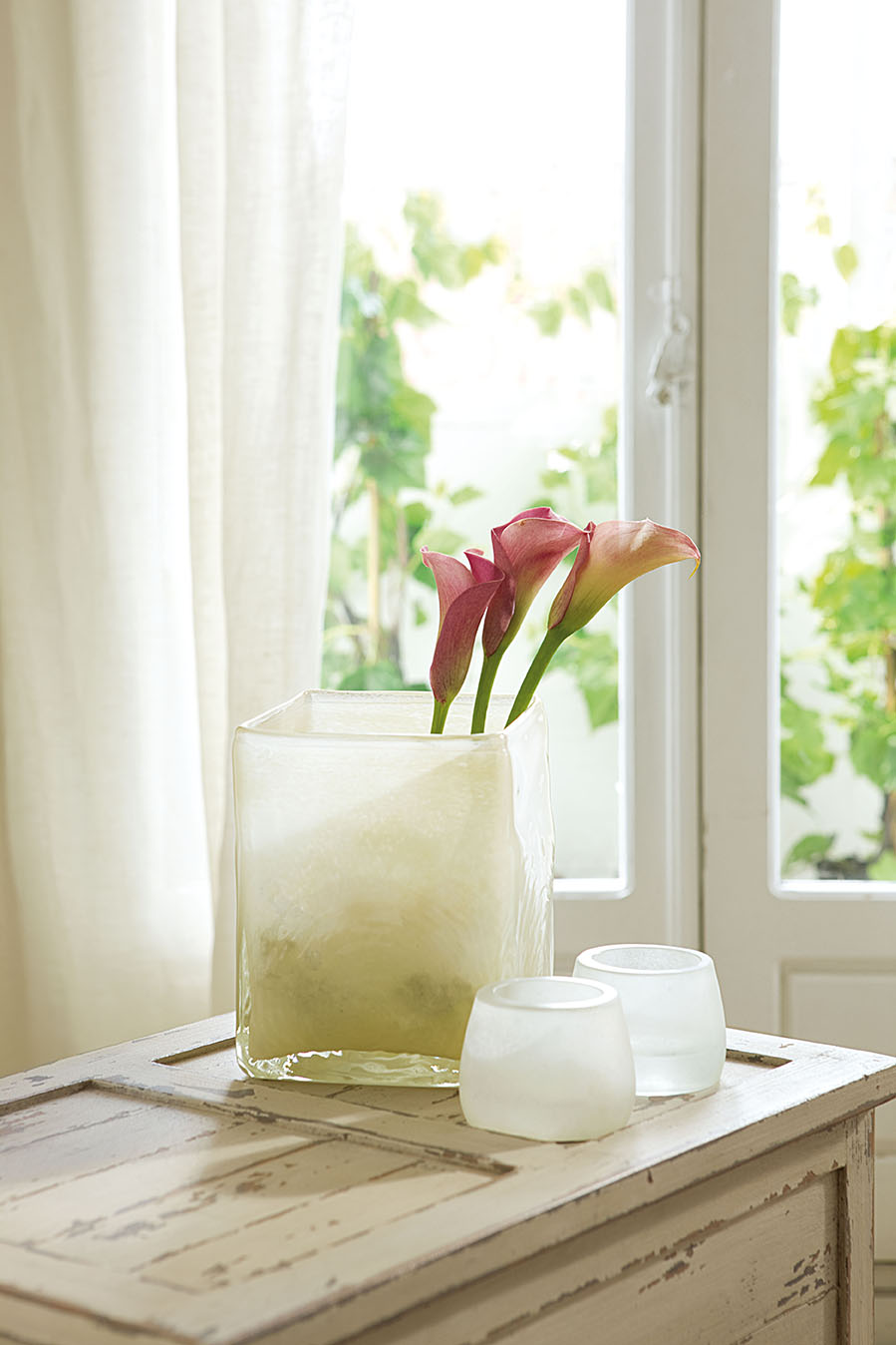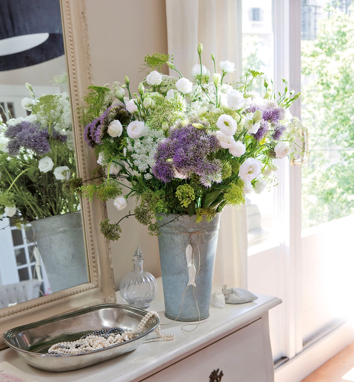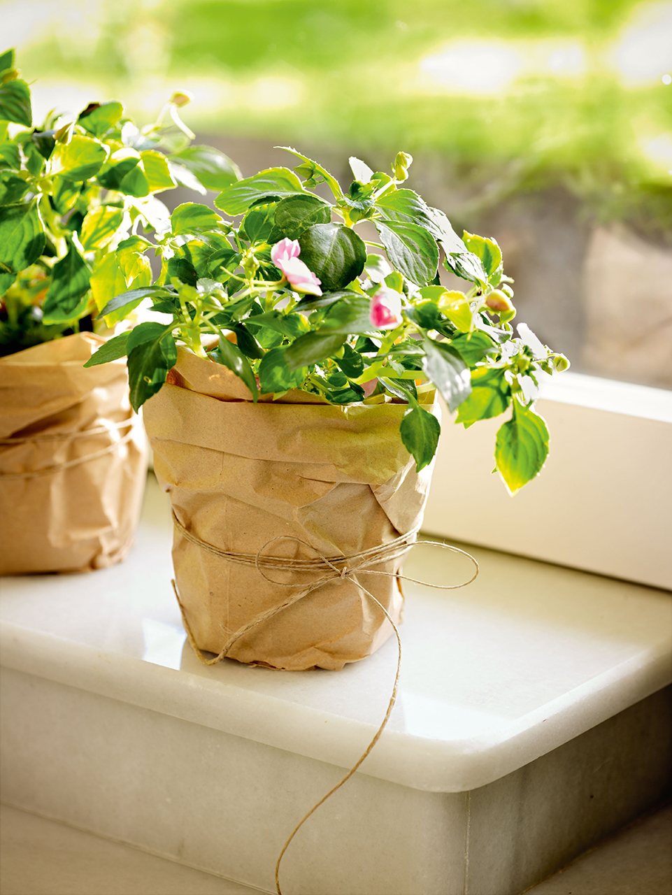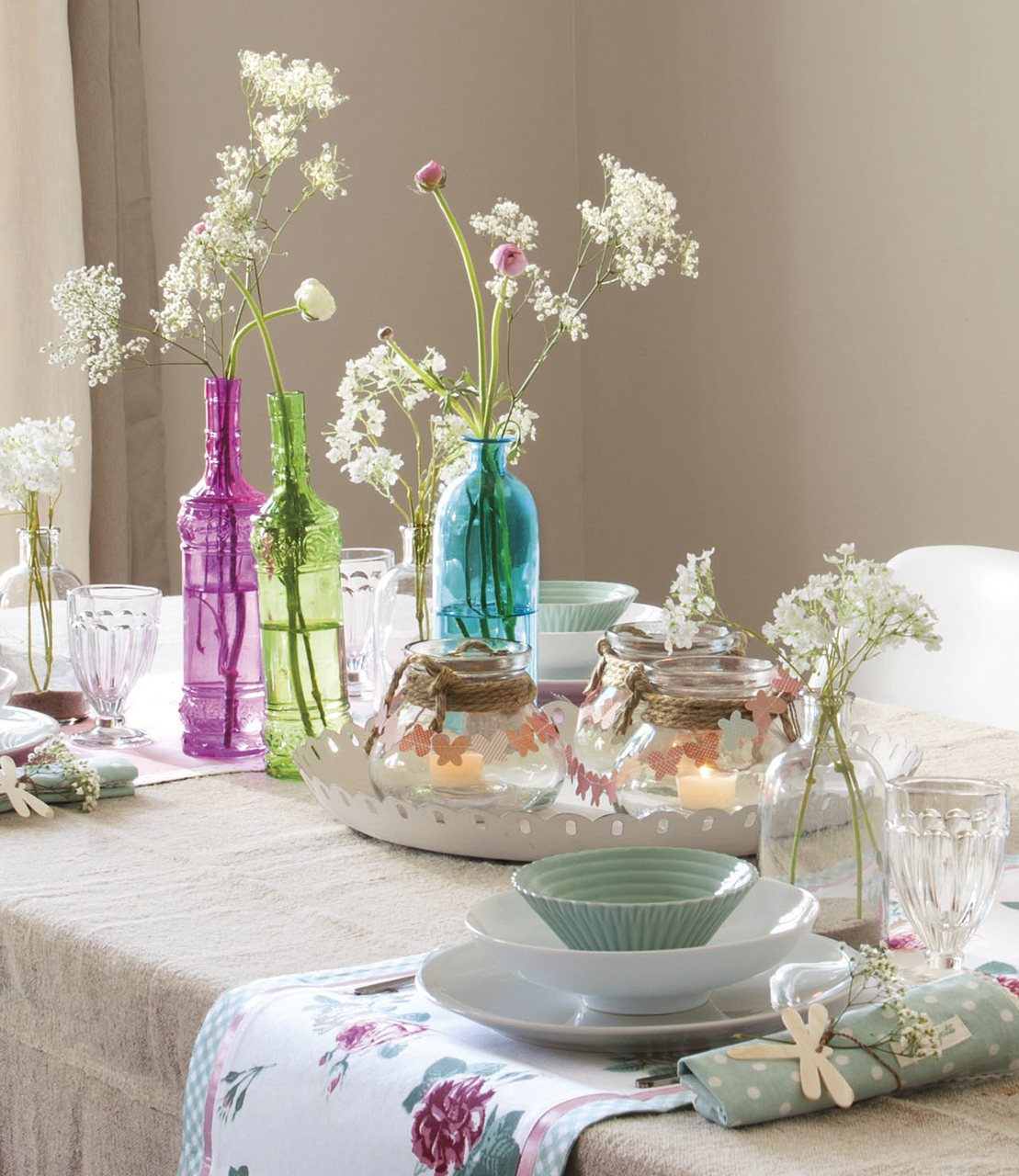 Combina plantas con flores con otras de distintos verdes y darás movimiento y profundidad al conjunto. Una buena idea es complementarlas con velas y dejar que la magia se adueñe del ambiente.