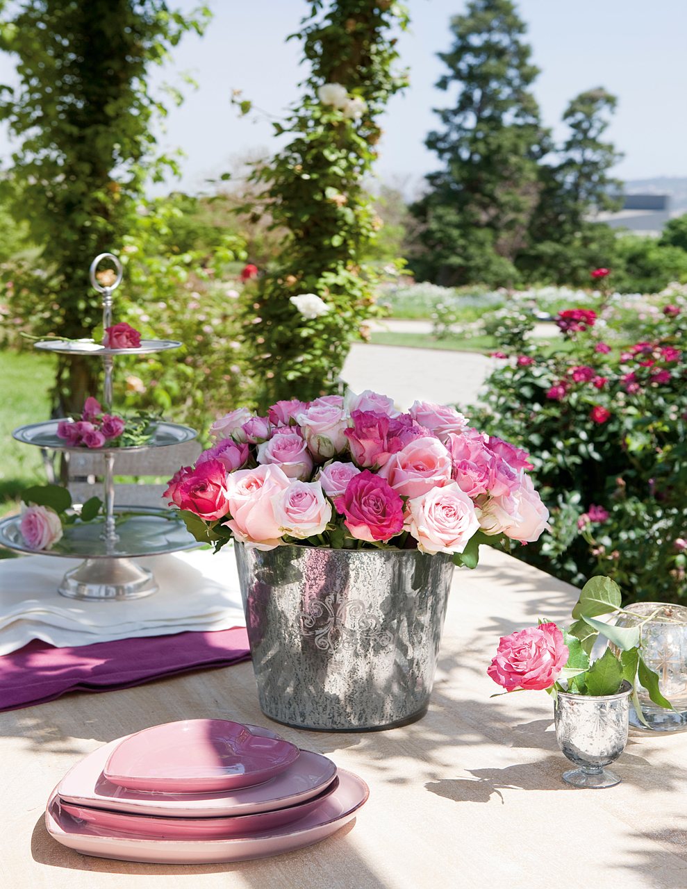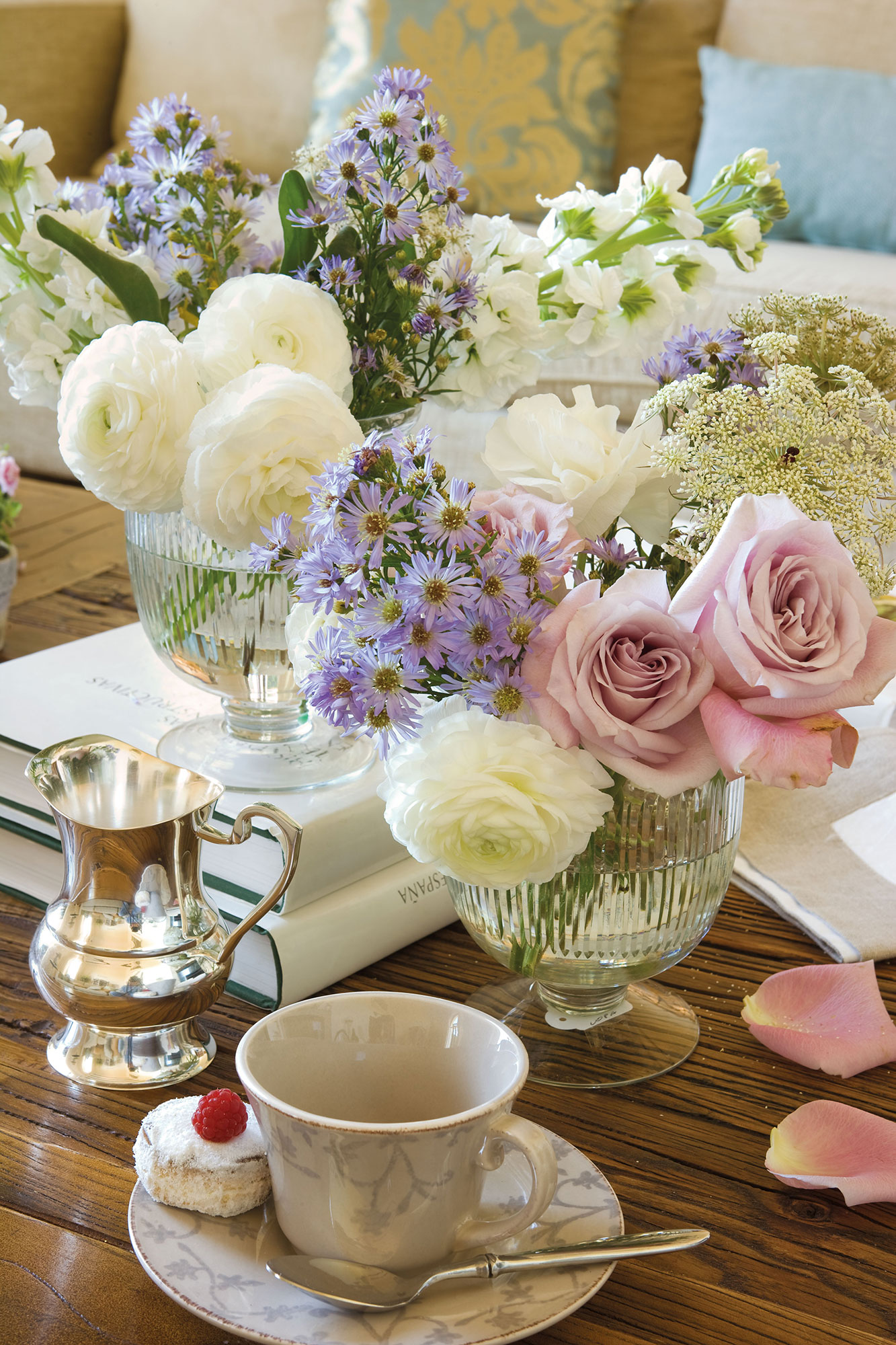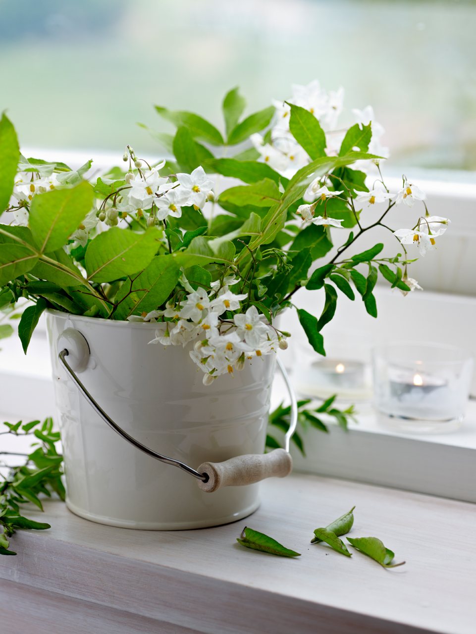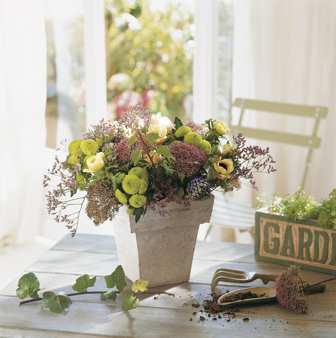Combina plantas con flores con otras de distintos verdes y darás movimiento y profundidad al conjunto. Una buena idea es complementarlas con velas y dejar que la magia se adueñe del ambiente.