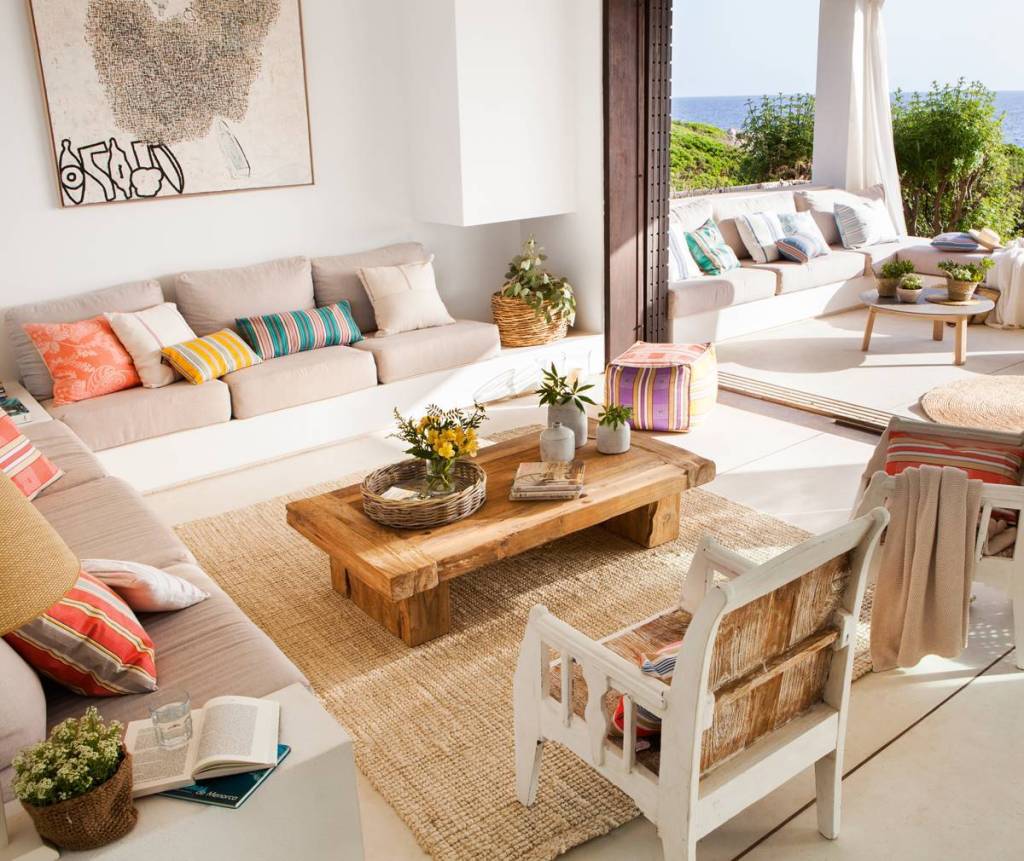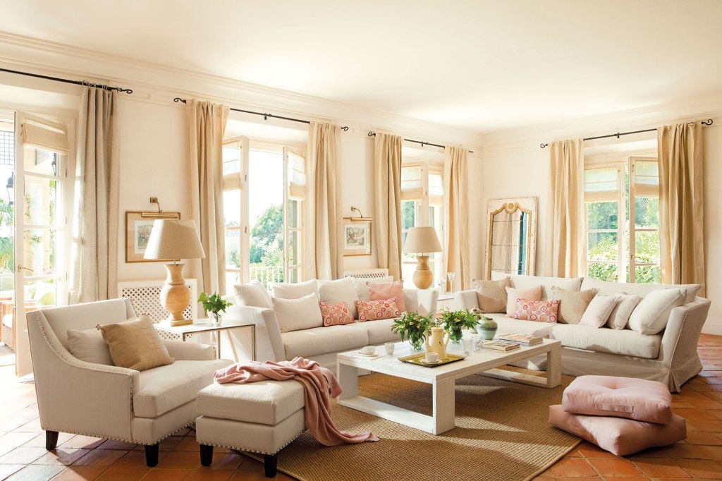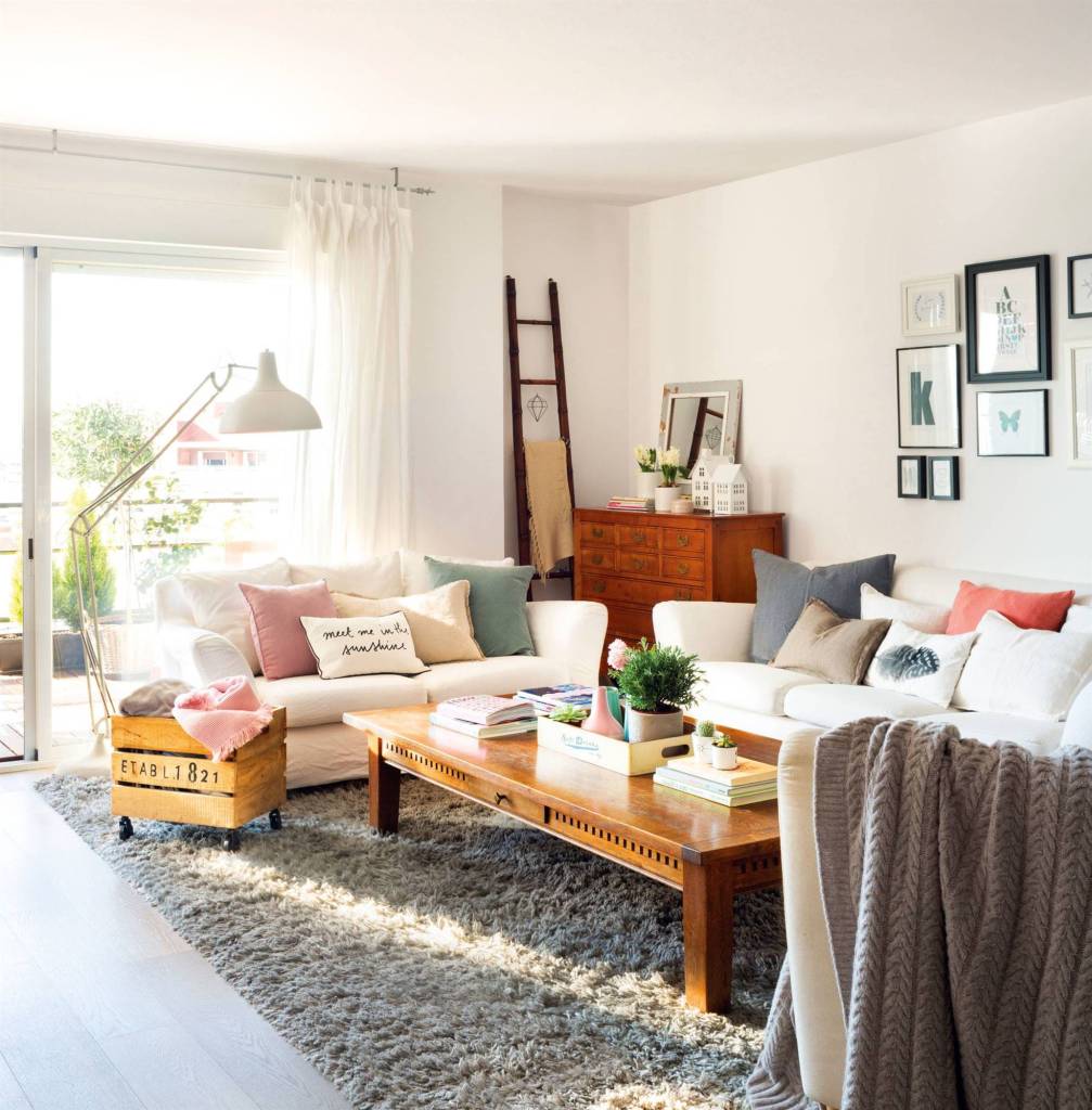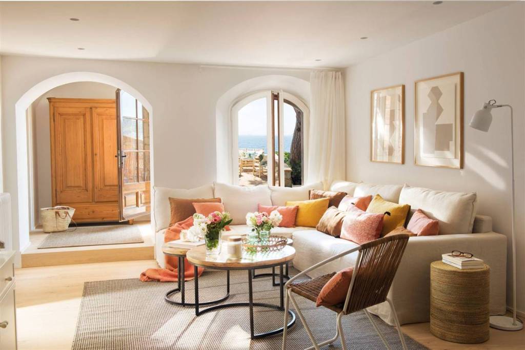 Las cortinas y los cojines son muy importantes para darle un toque de calidez. Intenta no recargar y opta por telas unicolor y de caida suave y vaporosa…harán que tu salón se sienta ligero y fresco, a la vez que le dará esa calidez que siempre buscamos.