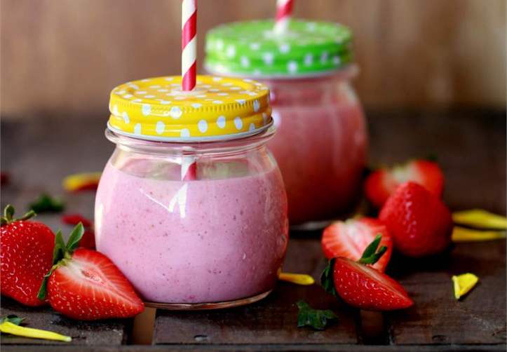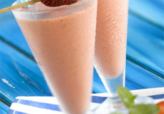 - Triturar las fresas, con el limón, el agua y la leche condensada.