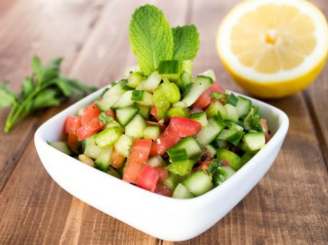 Un refrescante plato a base de tomate, pepino, tomate, cebolla, queso feta y aceitunas negras. El pepino es 90% agua por lo que tiene muy pocas calorías. El queso feta es un queso clásico de Grecia, tradicionalmente se elaboraba con leche de oveja y también de cabra, con un sabor peculiar.
