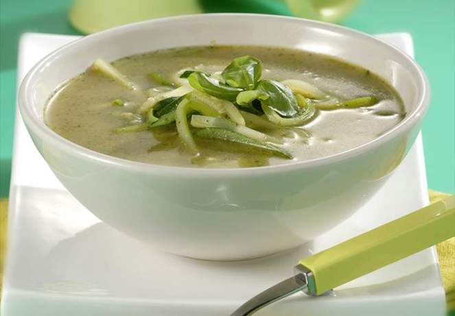 - Añadir 4 cucharadas de pesto y mezclar bien. Servir la sopa caliente en boles.
